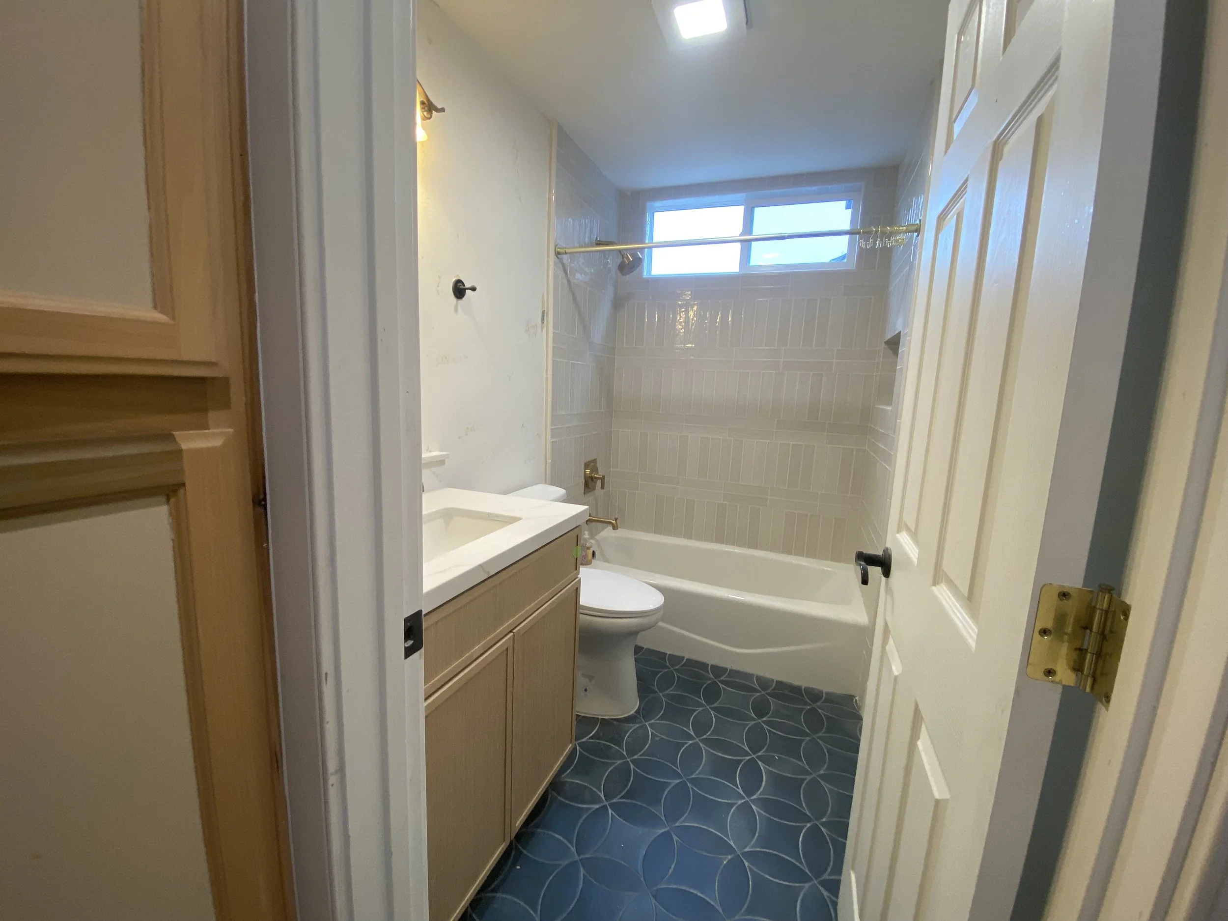 Upgraded all door trim, added window casing and trim, replaced stairway trim, upgraded toilets, upgraded downstairs bathroom shower plumbing, upgraded faucets in 2 bathrooms, replaced trim along stair casing, new bathroom fans, replaced all can lighting, replaced ceiling fan.